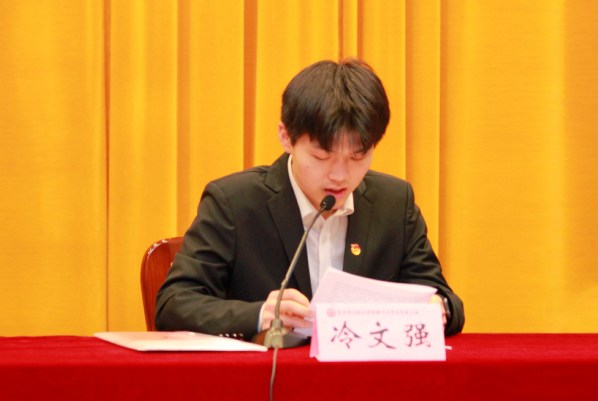 大会听取并审议了第五届学生委员会委员冷文强作的题为《挺膺担当砺青春 奋楫笃行向未来——在8040威尼斯第六次学生代表大会上的工作报告》。