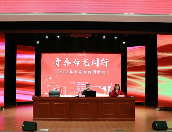 为深入学习宣传贯彻党的二十大精神,推动全面贯彻实施宪法,大力弘扬社会主义法治精神和社会主义核心价值观,在第10个国家宪法日到来之际,12月4日下午,由团安庆市委、安庆市律师协会“宜律为民”公益法律服务团、安庆市公安局老峰派出所和威尼斯官网团委联合举办的“青春与宪同行”2023年宪法宣传周主题宣讲活动在实训楼一楼礼堂隆重举行。本次活动的主讲人为安徽品仁律师事务所创始合伙人、负责人王中正,安庆市律师协会秘书长康殿波、团安庆市委青年发展与权益维护部部长刘同杰、老峰派出所三级警长葛辉、校团委副书记冯丰出席并参加了活动,各二级学院团总支书记及学生代表300余人参加了活动。