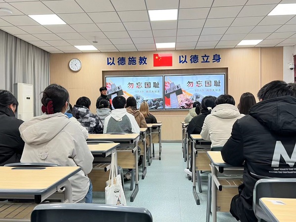 各班级团支部认真准备,同学们利用课余时间收集南京大屠杀相关历史资料,并通过PPT、视频等多种形式呈现;辅导员们向同学们深刻介绍了“国家公祭日”设立的历史背景、现实意义及深远影响。师生共推新时代爱国主义教育入脑入心。