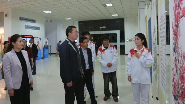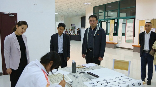 比赛结束后,周宇一行首先调研了威尼斯官网建筑工程学院实训基地,现场了解建筑工法创新实践中心项目,观摩了“一步一景、一处一训、步步有景、处处能训”的情景化实训平台,详细询问了“全国高校黄大年式教师团队”建设状况及成果,并对团队成员的精神及取得的成果予以高度的赞扬和肯定。随后,参观了图文一楼举行的优秀社团文化展,优秀社团逸风书法社、酒店爱好者协会、旅游爱好者协会进行了书法、插花、调酒作品和技能展示。周宇对威尼斯官网特色社团文化给予了表扬,要求共青团组织充分发挥团组织的作用,积极建设具有高职特色的校园文化。