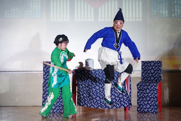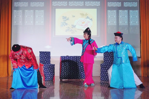 活动中,多部经典黄梅戏剧目轮番上演。首先是传统剧目《夫妻观灯》,舞台上生动呈现了元宵佳节王小六夫妻进城看灯的热闹场景,台下观众沉浸于其欢快的氛围和细腻的表演之中,仿佛置身于旧时的元宵灯会。紧接着,《女驸马》“状元府”桥段精彩亮相,演员们精湛的演技将冯素珍女扮男装、机智推脱招驸马圣旨的情节展现得扣人心弦,展现了黄梅戏独特的艺术张力和深厚的文化底蕴,赢得阵阵掌声。新编黄梅小戏《二妹子闹元宵》更是以贴近生活的故事和活泼的唱腔吸引了观众的目光。该剧讲述了平民女子二妹子凭借智慧捍卫爱情的故事,充分展现了黄梅戏反映百姓生活的特点,其花腔小调的优美旋律在厅内久久回荡。随后的《十八里相送》经典片段,梁山伯与祝英台的深情演绎让观众深刻感受到了这段千古爱情的凄美与执着,演员们细腻的情感表达和优美的身段动作,将现场气氛推向了高潮。最后上演的传统小戏《打豆腐》以幽默诙谐的方式讲述了王小六的转变,演员们生动的表演引发了台下观众的阵阵笑声,同时也传递了深刻的生活道理。
