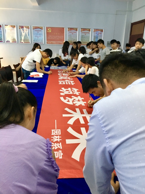 会议结束后,与会同学在相关老师的倡导下,共同宣读并签订了诚信承诺书,在诚信感恩横幅上写下自己的名字。承诺要以良好的状态关爱他人,做一个诚信、感恩的人。