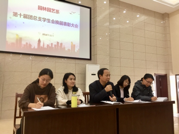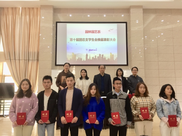园林园艺系第十届团总支学生会换届表彰大会于2018年11月1日在2栋316教室顺利召开。此次大会由团总支、学生会的同学们及系党总支副书记、系部老师们共同参加。
