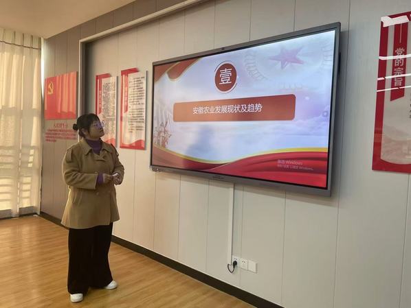 会议伊始,徐基艳老师进行了精彩的PPT汇报。汇报内容涵盖安徽农业发展现状与趋势、特色专业群建设思路、专业课程与教材改革背景、促进专业课程与教材改革的措施以及支部的示范带头作用等五个重要方面。徐老师通过深入的分析,全面展示了安徽省农业在现代化进程中的机遇与挑战,阐述了学院特色专业群建设应以服务地方农业为导向,紧密结合农业产业链需求,优化课程体系,创新教材内容,充分发挥党支部在专业建设中的引领示范作用,为学院专业改革提供了清晰的行动路径。