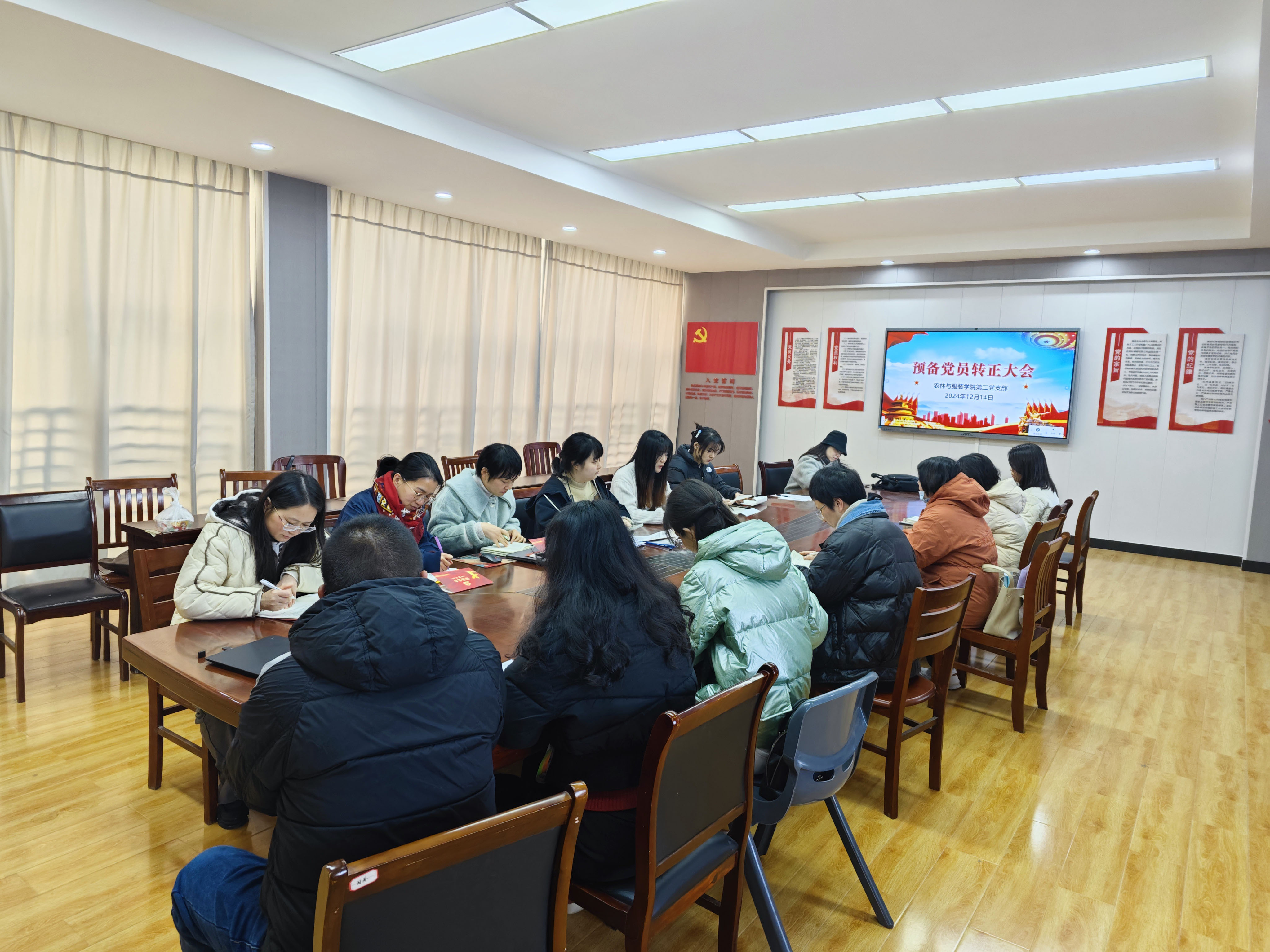 12月14日,农林与服装学院第二党支部在学院会议室召开了“预备党员转正会议暨党员政治生日”活动。会议审议、表决新一批同志成为预备党员,同时举行党员同志集体过“政治生日”活动。